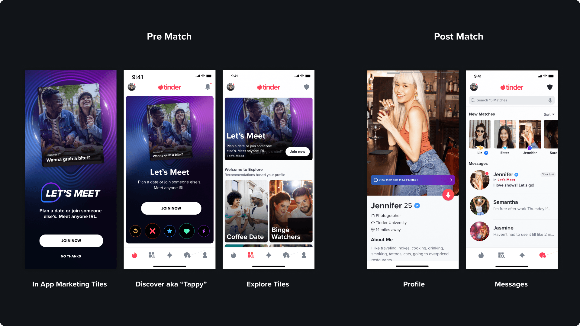 Rather than burying the new feature in a single tab, we designed consistent entry points across Tinder’s existing pages. By weaving these pathways into the main Discovery experience and primary Explore tiles, we maximized visibility while keeping the user's navigation natural and intuitive.